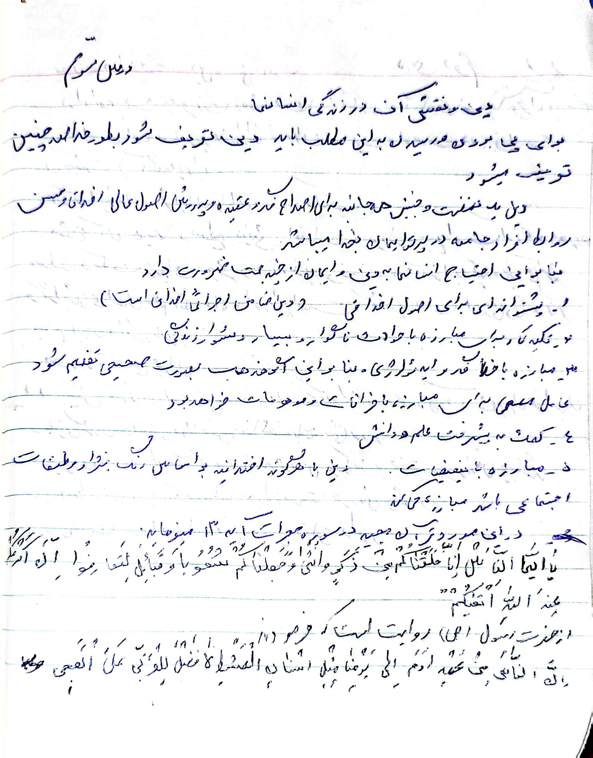 درس سوم ، “دین و نقش آب در زندگی انسان ها”، ص1